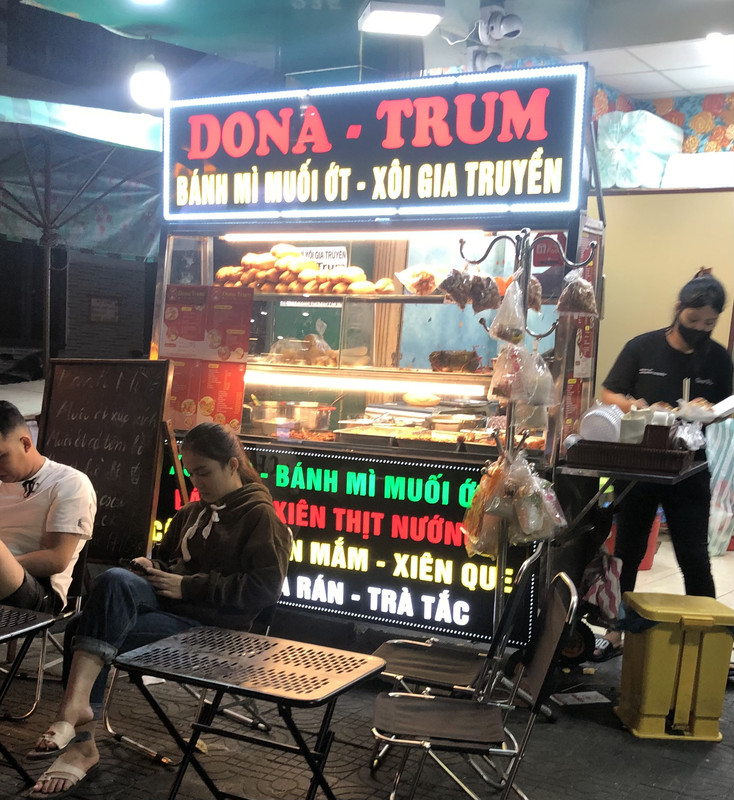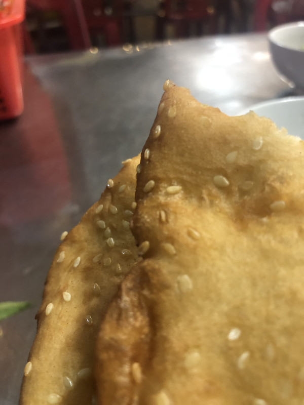 He’s selling banh tieu which is similar to beignets except there’s sesame seeds but no powders sugar involved. I didn’t get any but the food vendor bought some and offered me one.