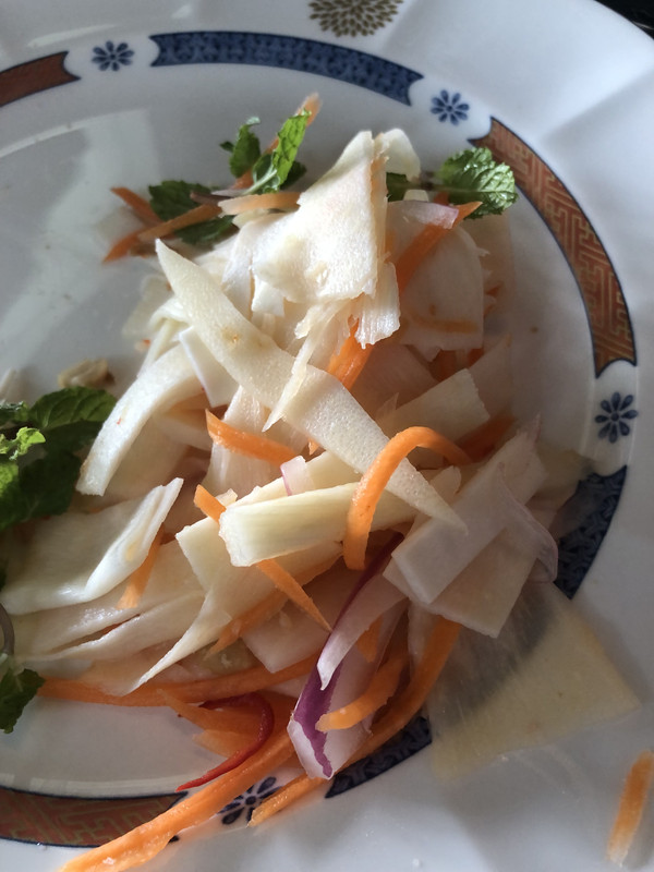 Also had my first coconut blade salad(new item#3). It’s similar to the heart of palm except that it’s the inner part of the top of the coconut tree. Sweet like corn, crispy, refreshing.