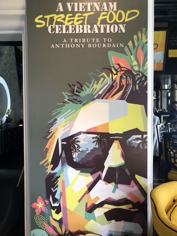 Upon entering the restaurant, there’s an art tribute to Anthony Bourdain.