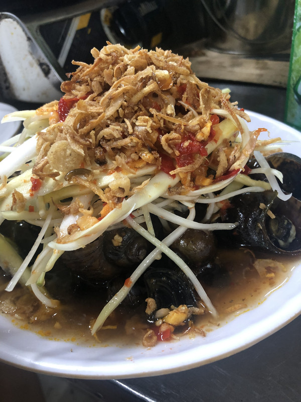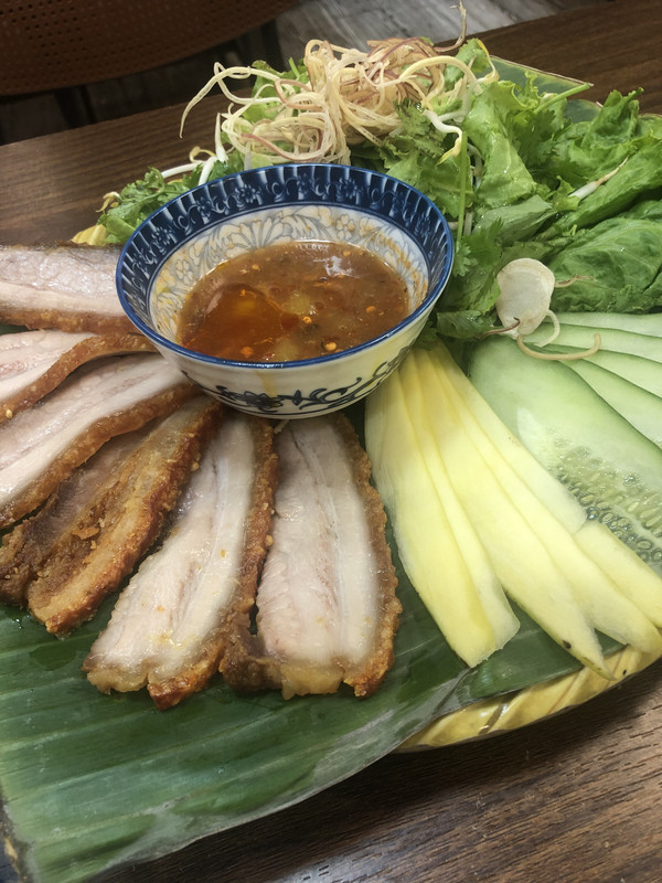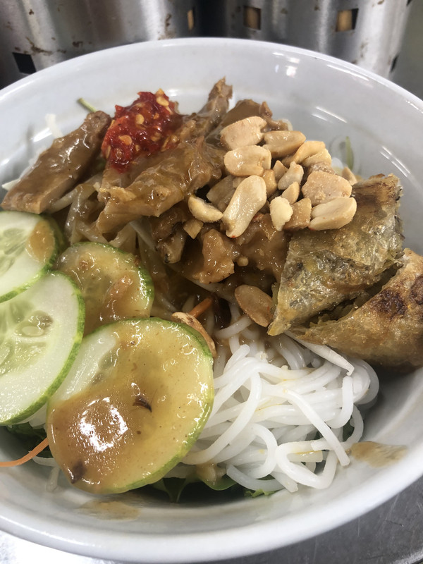 Normally home made fish sauce is added vermicelli bowls. But here in Da Nang, they add this thick sauce. It’s different but it’s good.