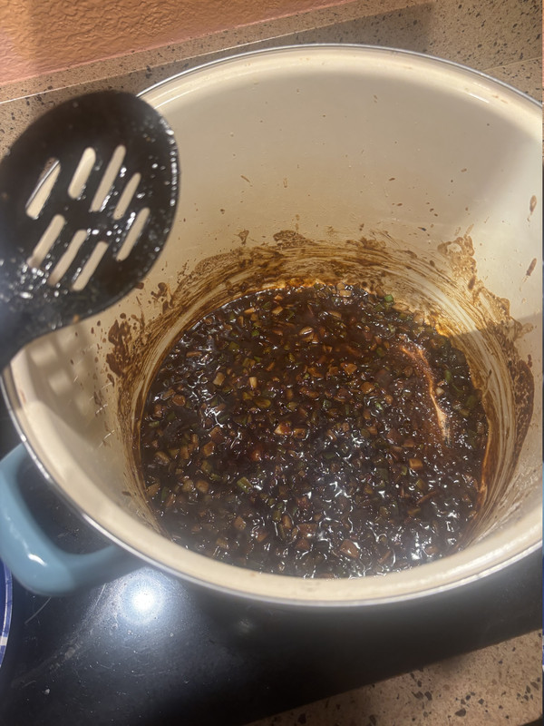 First time doing not something store bought. Probably fricked it up but roux just throwing in the trinity.