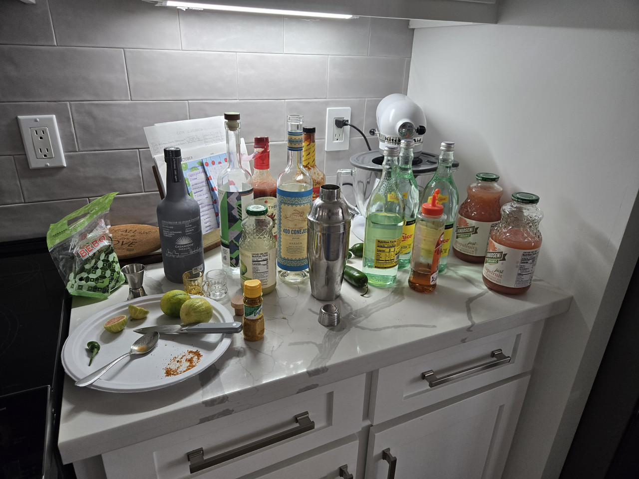 Excuse the mess, but we got a mezcal bar set up for our annual $10/under white elephant party