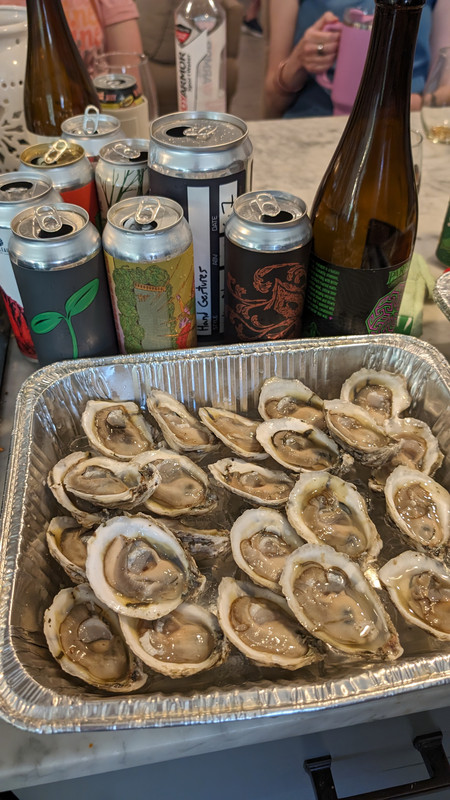 I'd destroy those oysters right about now. Beers aren't too bad either. Is that some old Doctor Octagon?
