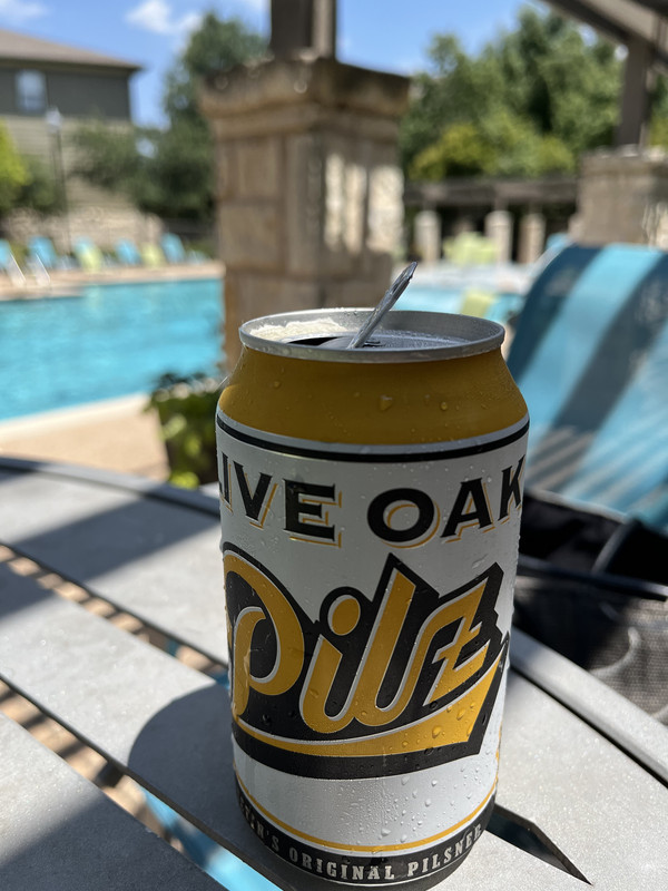 FBD on the back porch after mowing. Still hot but the humidity is down in 70808. I don't care about the football games today, but at least it is football. Looking forward to next weekend though