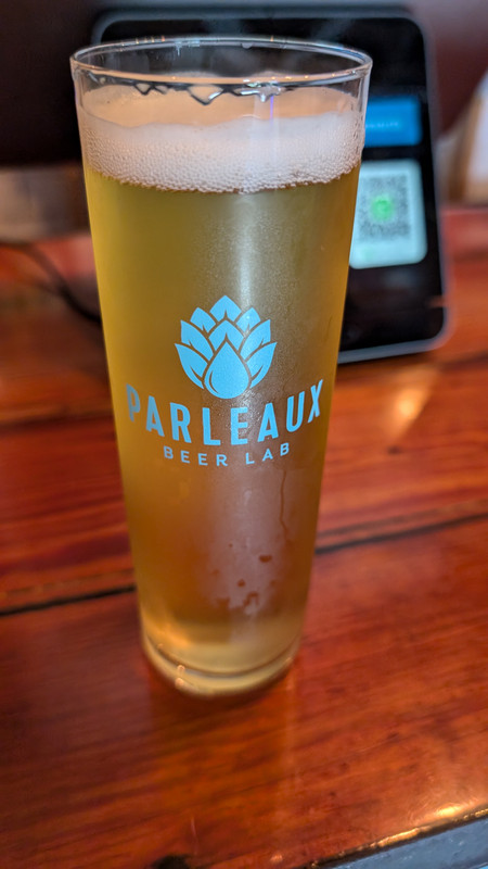 FBD Hazy pale ale, 84° 16% humidity on and off 15 mph wind is tough to beat.