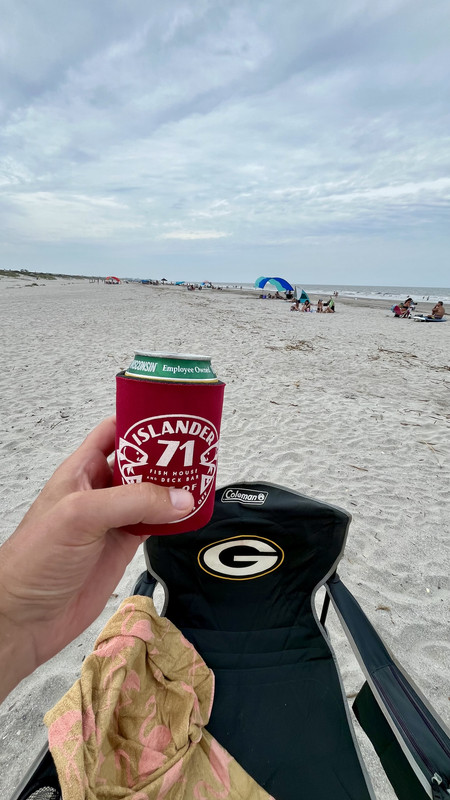 Why Green Bay chair instead of Wiscy chair? Have you decided whether to bandwagon on SC or Clemson yet? Also, do cops not patrol the beaches there anymore? I have always put my booze in a tumbler because of the cops on SI/IOP going back to 2005. I never see anyone with obvious blatant alcohol out there like you are showing in your pics.