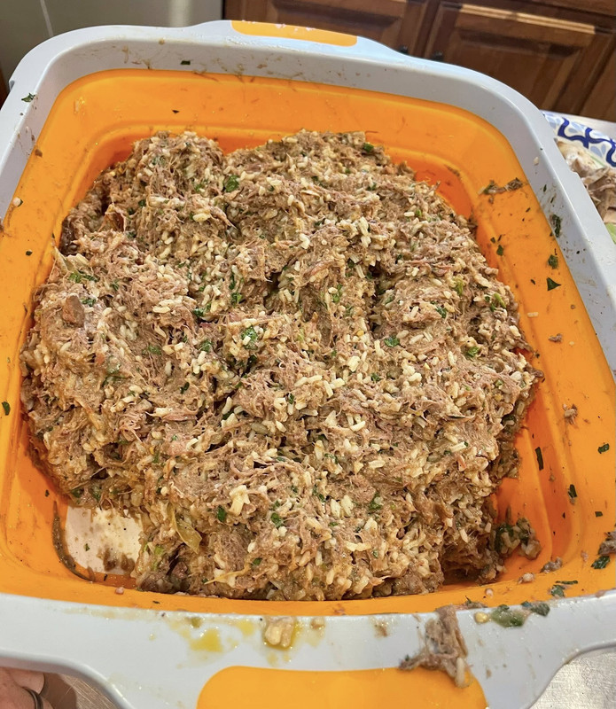 Looks great. You can chop all everything up with a knife instead of grinding. I kinda prefer that texture when I've done it that way, though it's a bit more work.