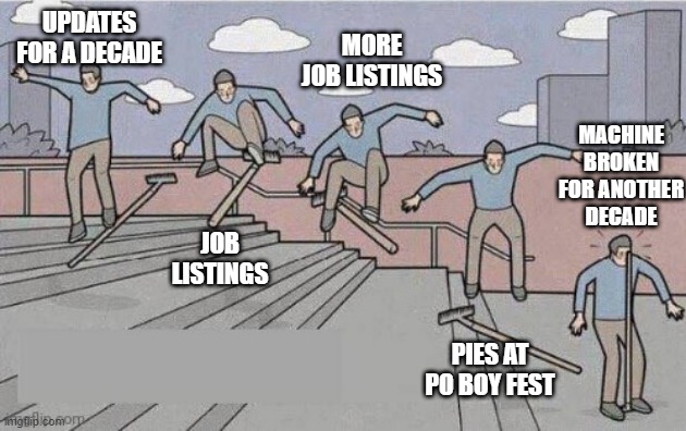 Must have gotten the pie machine from the McDonalds ice cream machine manufacturer. “Sorry pie machine broke!”