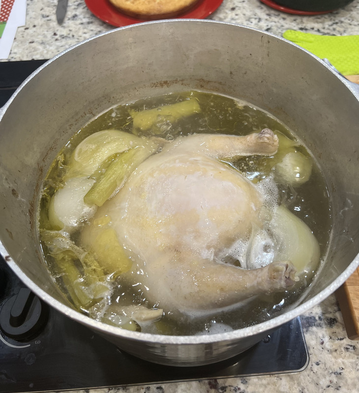 Corn bread made for dressing and hen simmering