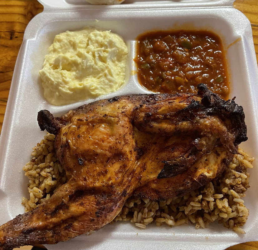 BBQ chicken and BBQ pork steak. Lots of food. Brought half of it home.