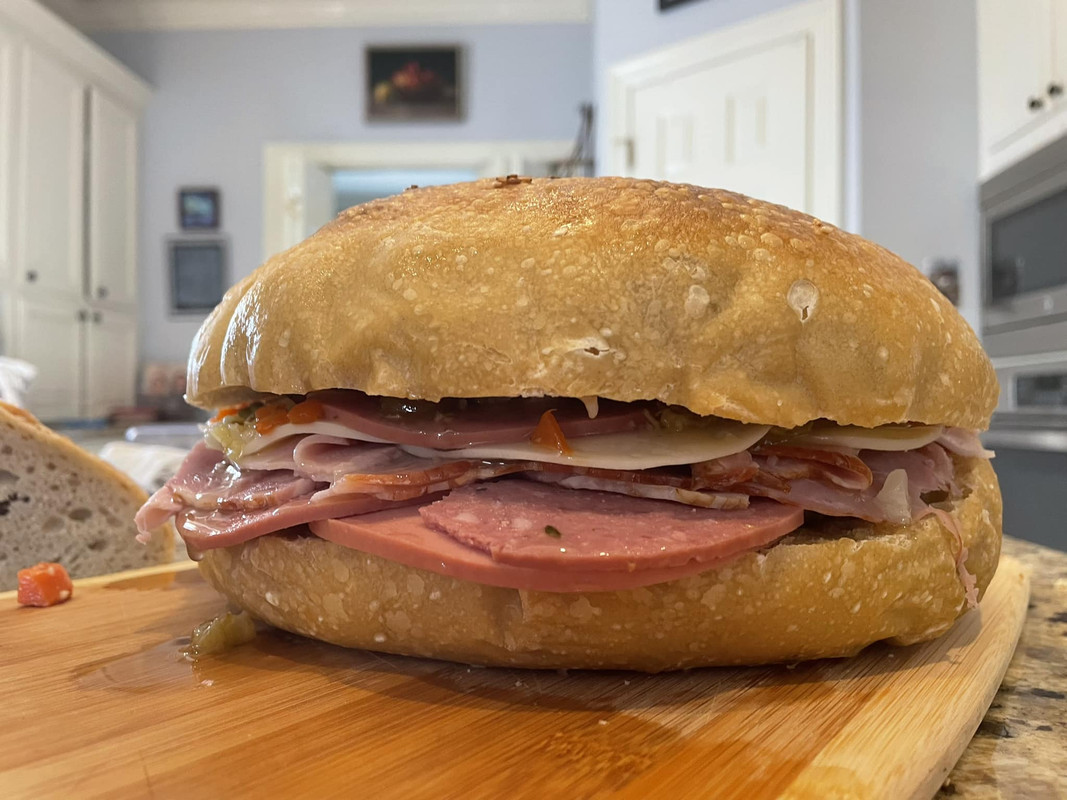 I confess, yes, it was too late in the day to go find capicola, so I cheated (a little), garlic bologna is very similar. Chef's privilege. I used to make a short trip to Pocorello's for everything, sad he closed.