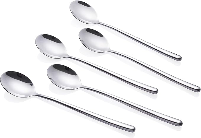 Korean Stainless Steel Long Handle Soup Spoons Pack of 5 (8.7x1.6 inches) $12.90