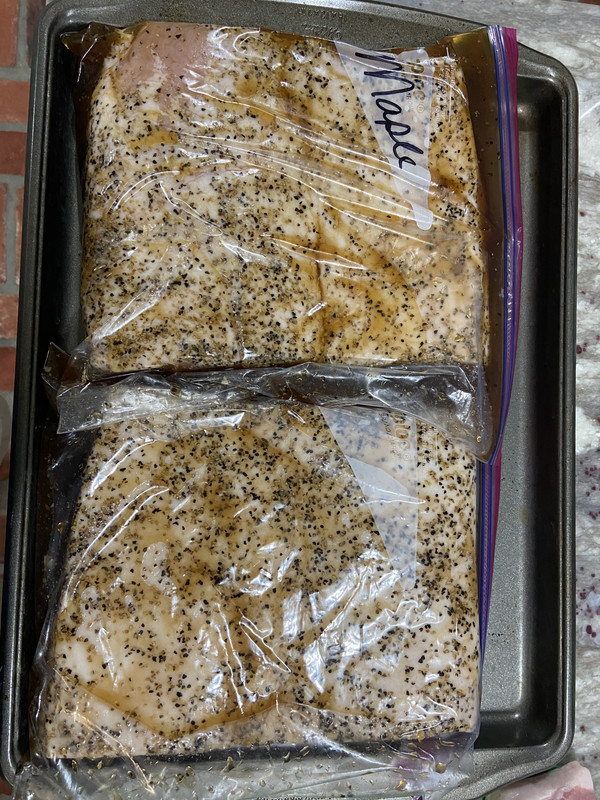 I grabbed about an 8lb belly and started the curing using amazing ribs recipe last weekend. Pulled it out last night and smoked it, then sliced this morning.