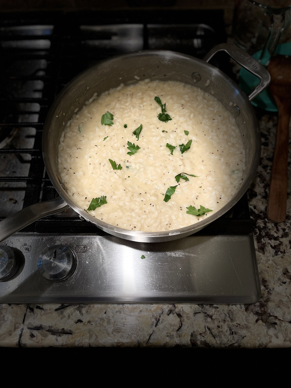 First attempt at risotto, came out pretty good. Used some onion, garlic, and Parmesan. I have some Osso Buco in the freezer and may have to try this and recreate a great dinner I had at Irene’s. Any tips or advice on RRisotto I’d love to hear. Excuse the second pic, just got my first iPhone in nearly 10 years and playing with this camera and food has been fun.