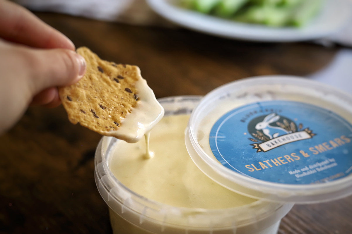 Smoked Gouda pimento cheese and homemade hummus for spreading on the breads.