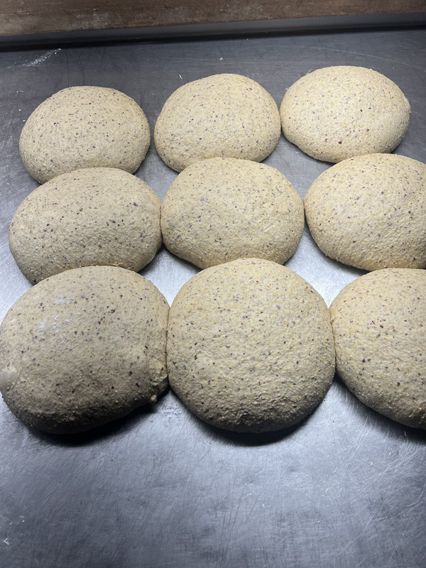 But I have some great breads proofing right now. The sun dried tomatoes, Parmesan pesto, jalapeno cheddar and the ancient grain Khorasan will be there. Also an ancient grain with bloody butcher corn loaf available and a new bloody butcher, smoked Gouda, roasted hatch pepper bread is rolling out this weekend. See how it goes over.