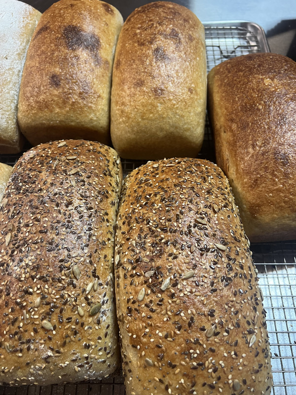 But I have some great breads proofing right now. The sun dried tomatoes, Parmesan pesto, jalapeno cheddar and the ancient grain Khorasan will be there. Also an ancient grain with bloody butcher corn loaf available and a new bloody butcher, smoked Gouda, roasted hatch pepper bread is rolling out this weekend. See how it goes over.