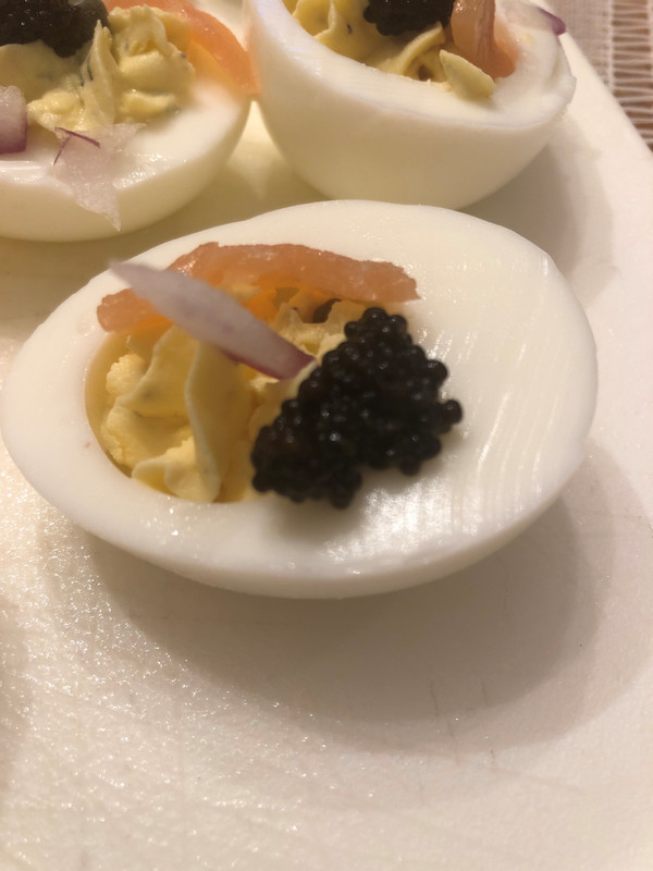 I did a shrimp remoulade deviled egg one time. Came out really good, but chopping the shrimp really fine was kind of a pain. The flavor was really good though. I also did some with smoked salmon, bowfin caviar, and shaved shallots. That one was amazing.