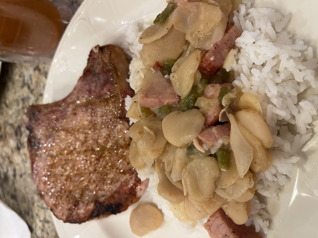 Cooked a pork roast, some big white limas, rice, gravy, salad and rolls. Fed my bartender. :)