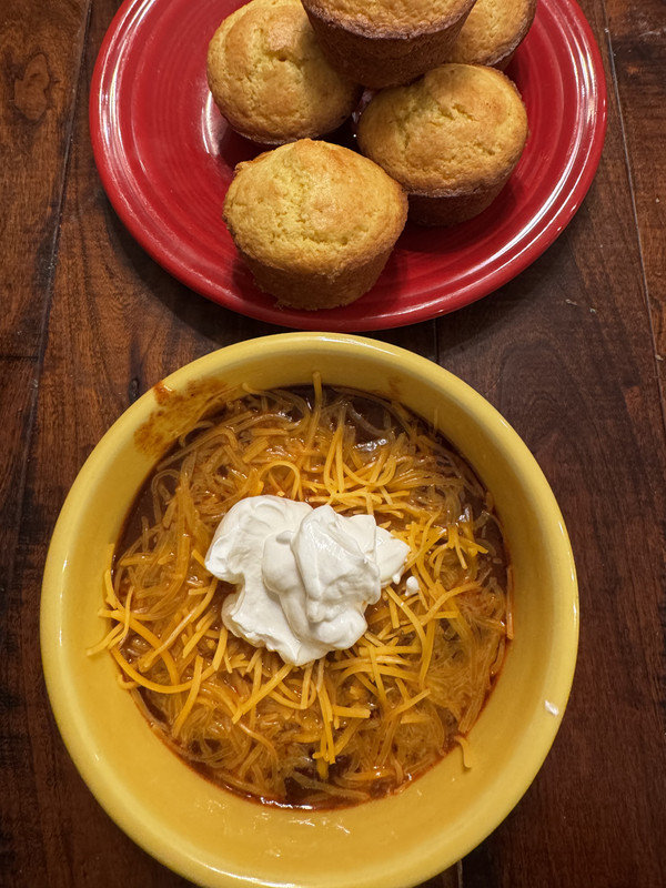 Cooked a pork roast, gravy, big white Limas, rice, rolls and made coleslaw. The bartender had game day food. :)