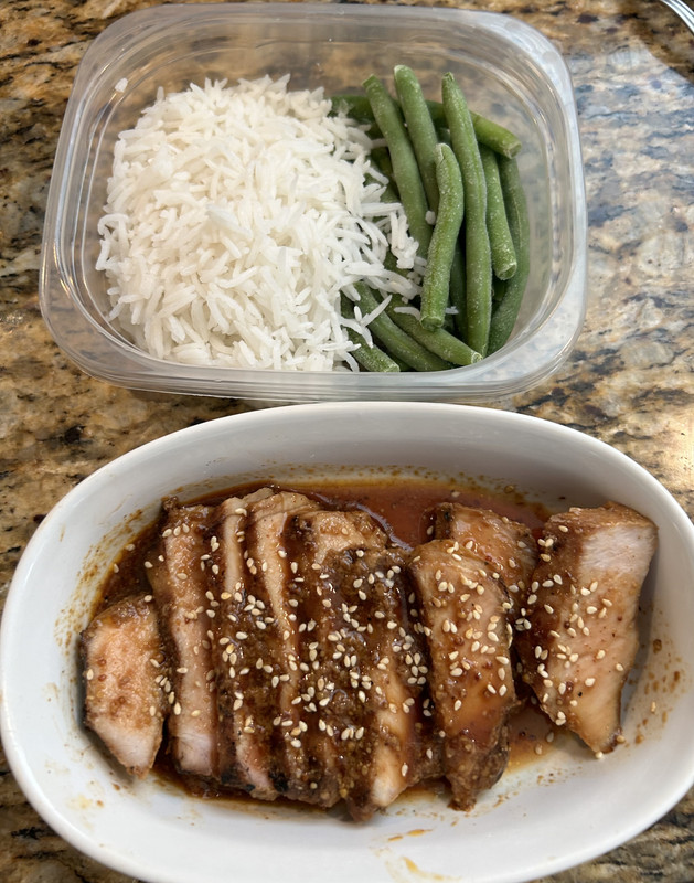 Grilled some chicken breast. Had leftover red beans, rice and salad. :)