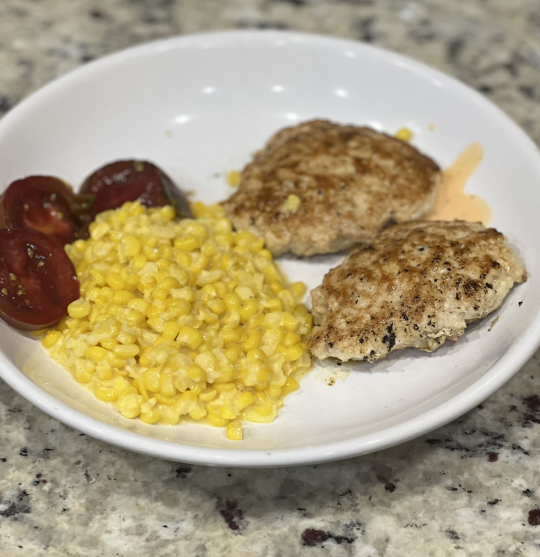 Pork tenderloin, air fryer roasted cauliflower, cucumbers.