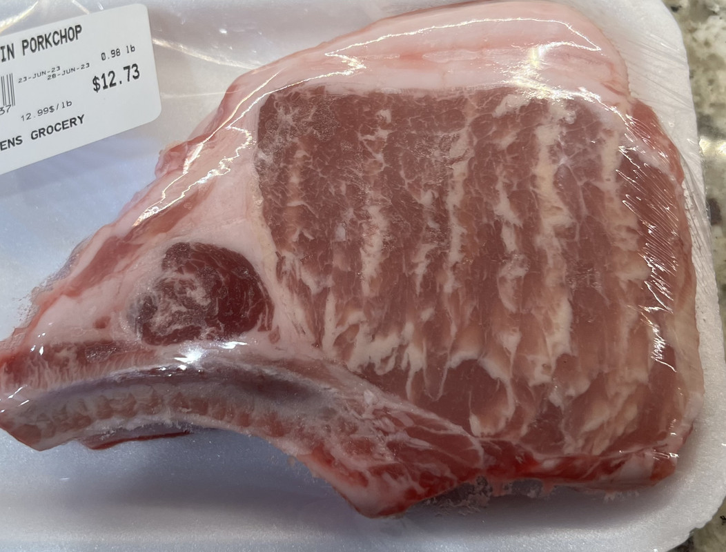 Crazy amount of marbling on this chop.