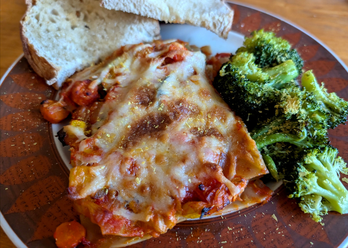 Veggie lasagna with a sauce made out of tomatoes from the garden