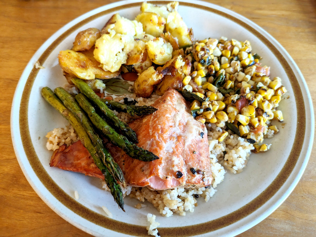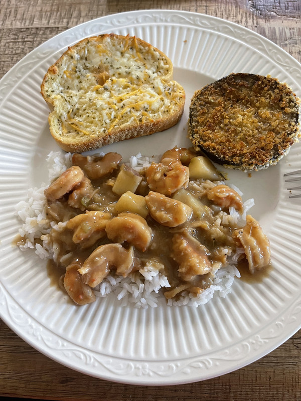 Ribeye and air fried French fries. My steak wasn't as pretty as Bayou's.