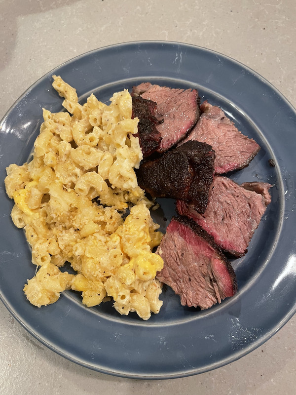 Baked a ham because it was on sale. Had some leftover crawfish etouffee and rice. Made new green beans, Mac & cheese, slaw and Sister Schubert’s rolls. Fed my bartender. :)