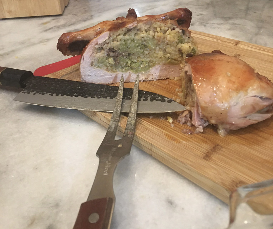 Broccoli, cheese and rice stuffed boneless chicken