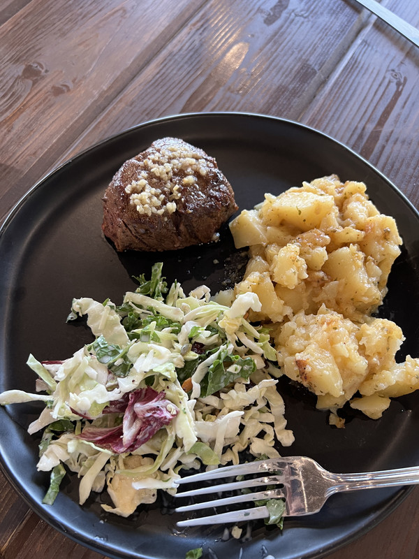 Salad, taters, filet