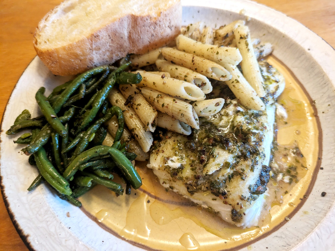 Baked pesto haddock and pasta
