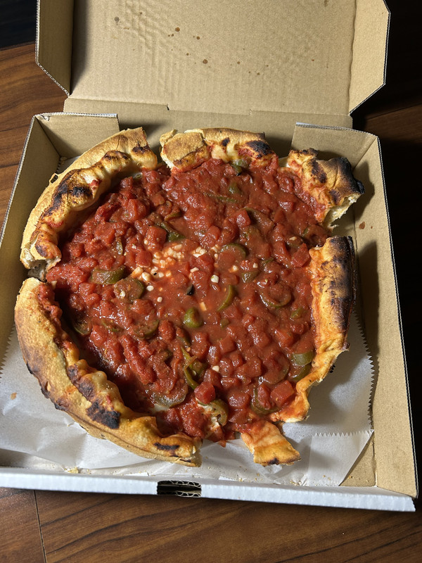 A “Chicago style” deep dish pizza. It looks like a pile of mess but this is my first Chicago style deep dish so I don’t know if it’s accurate