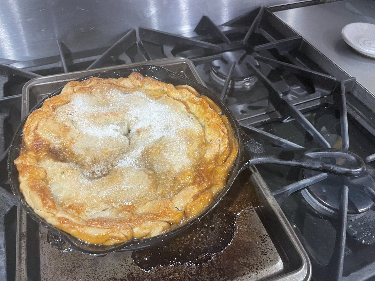 Picked up some ribs, pulled pork, grits, mac and cheese from a local bbq joint and cooked an apple pie.