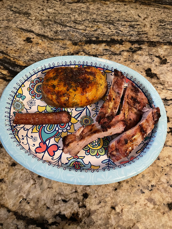 Ribs cooked in the pressure cooker and finished in the grill and a side salad.