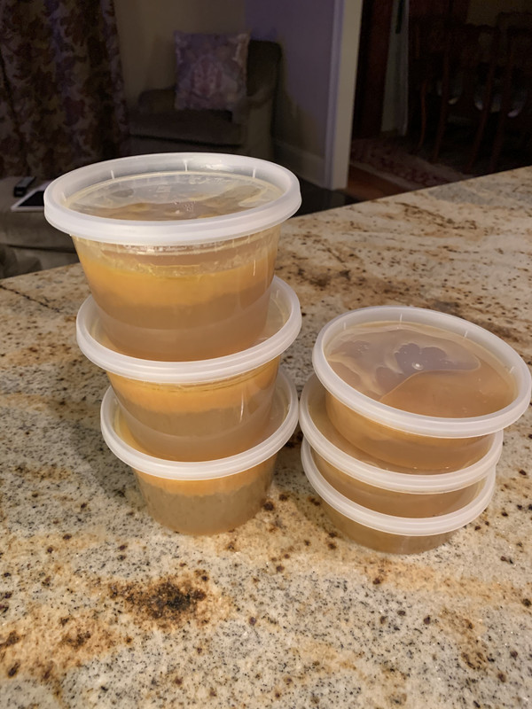 ETA: that was five bucks worth of chicken feet. Lot of gelatin in them.