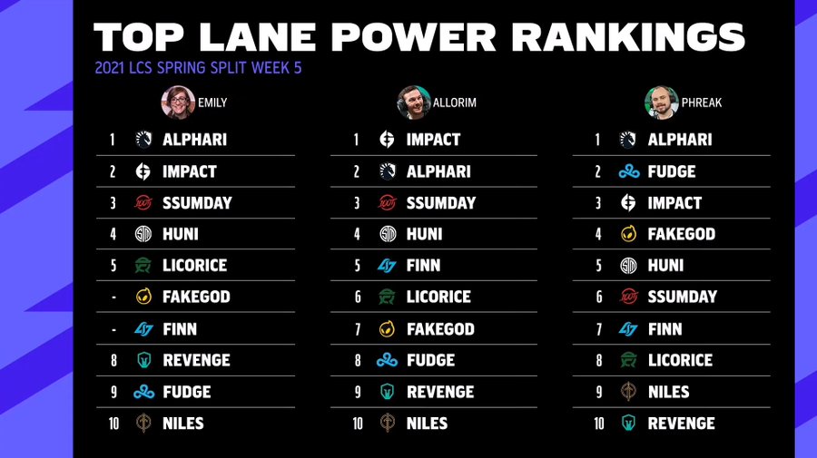 That's about right, the thing is the top laners he 's ahead of are just horrible. Niles and Revenge are mediocre academy guys at best, licorice has fell off the map and if it wasn't for his name he should be 8th or 9th. NA top is terrible, I think it is the weakest position in the region.