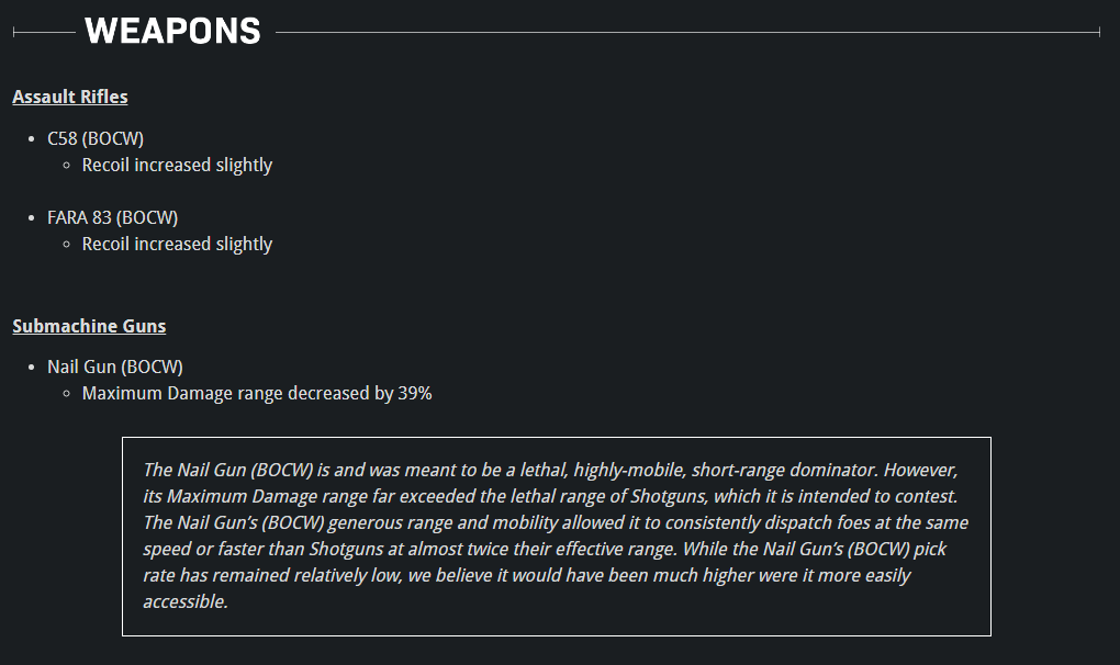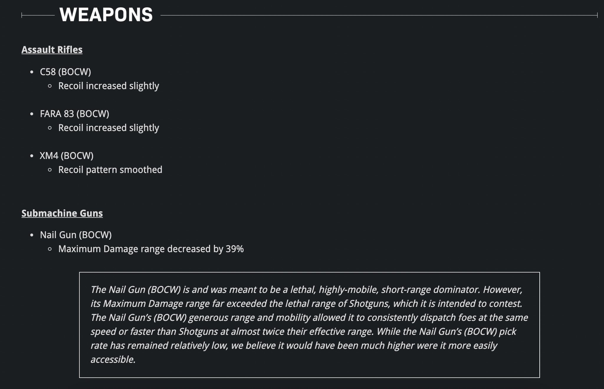 Glad the nail gun got nerfed, it was stupid how powerful it was.