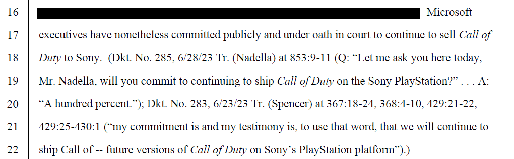 The FTC tried to “gotcha” Phil Spencer by making him swear under oath he would keep Call of Duty on PlayStation and future PlayStations. He then…swore that under oath. They then tried to make him swear the same about other games and the judge was so annoyed by them attempting to do that she cut them off.