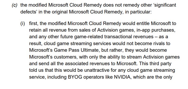 The FTC called the Google Stadia exec, and Microsoft's lawyers got him to admit that Stadia competed with XBox. This is bad for the FTC (and terrible for the CMA), because they were trying to show there were issues with Cloud gaming competition when that market is virtually nonexistent. The Google guy actually ended up hurting the case the FTC (and the CMA) are trying to make.