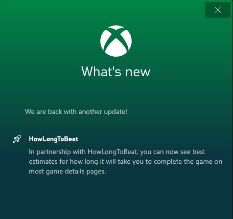 I opened the Xbox App on PC and noticed a new feature that integrates howlongtobeat time and length estimates.