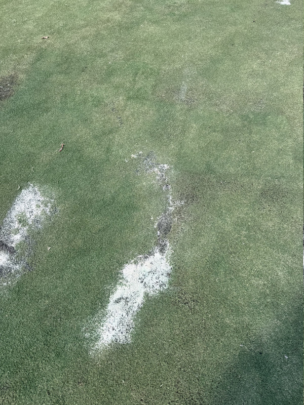 There are maybe 3 greens in total that have a few spots on them (#2, #4, #16) and only 2 and 6 have "spots" on them being filled in and they are on the outside rings of the green and only a few spots. The greens are rolling between 9-10. Not sure what weeds your talking about either ??