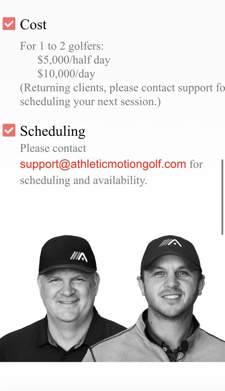 For 1 to 2 golfers: $5,000/half day $10,000/day (Returning clients, please contact support for scheduling your next session.)