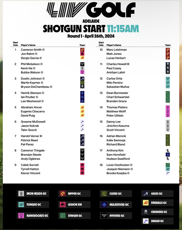 LIV Adelaide will start at 11.15 a.m. local time (9.45 p.m. ET).