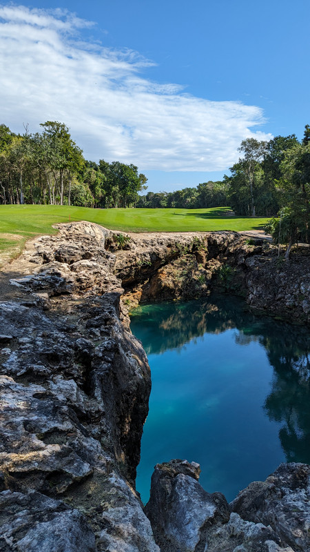 It was pristine like most Mexican resort courses when I played it, didn't see another group also. There is a sweet long par three you have to carry a whole cenote.