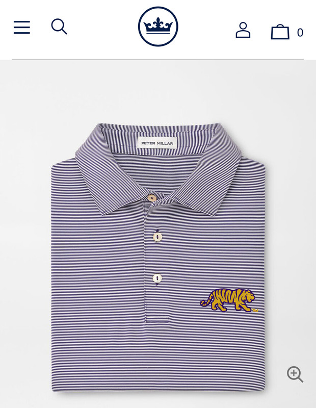 Peter millar already has a purple & gold tiger shirt. Probably cheaper than a dumb SDR polo too