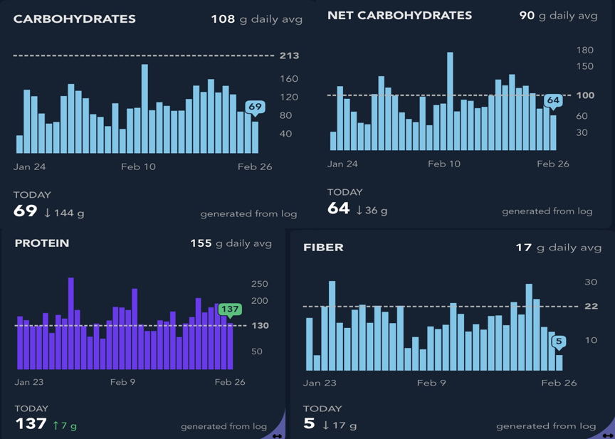 I’m targeting. Is there a part of your diet (carbs, fats, protein) or routine that you focus on that helps you maintain those numbers?