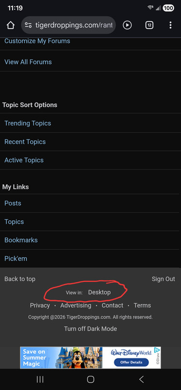 Have had a couple of email messages from TD officials but no one has said why the mobile/desktop tab doesn't show up on my phone view or desktop view. The laptop view is normal.
