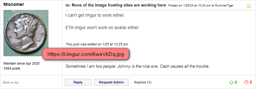 My avatar image and my signature image are both on Imgur and both are showing up nicely.